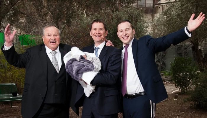 After giving his son a Mazel Tov on the bris of his newborn son, Harry Rothenberg…